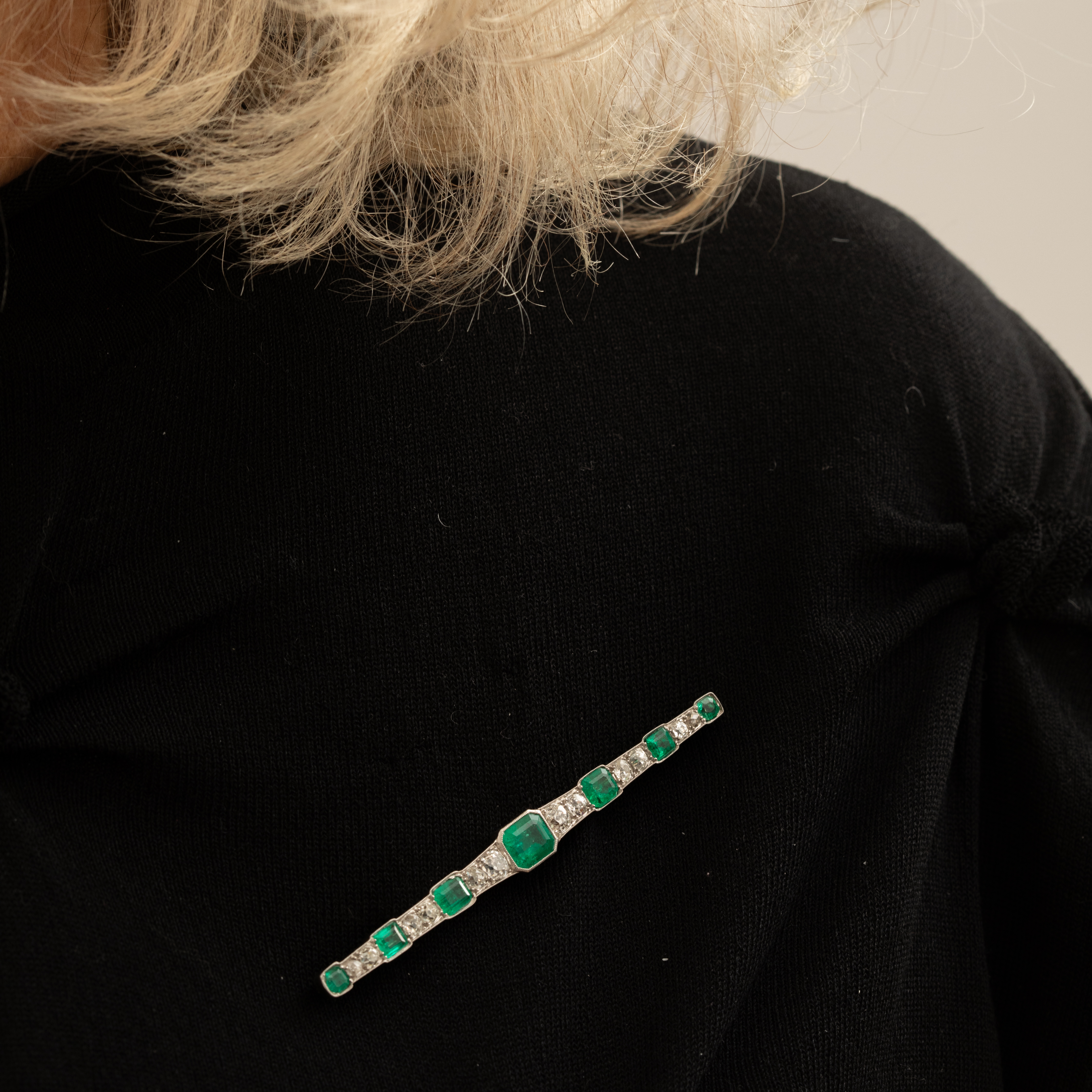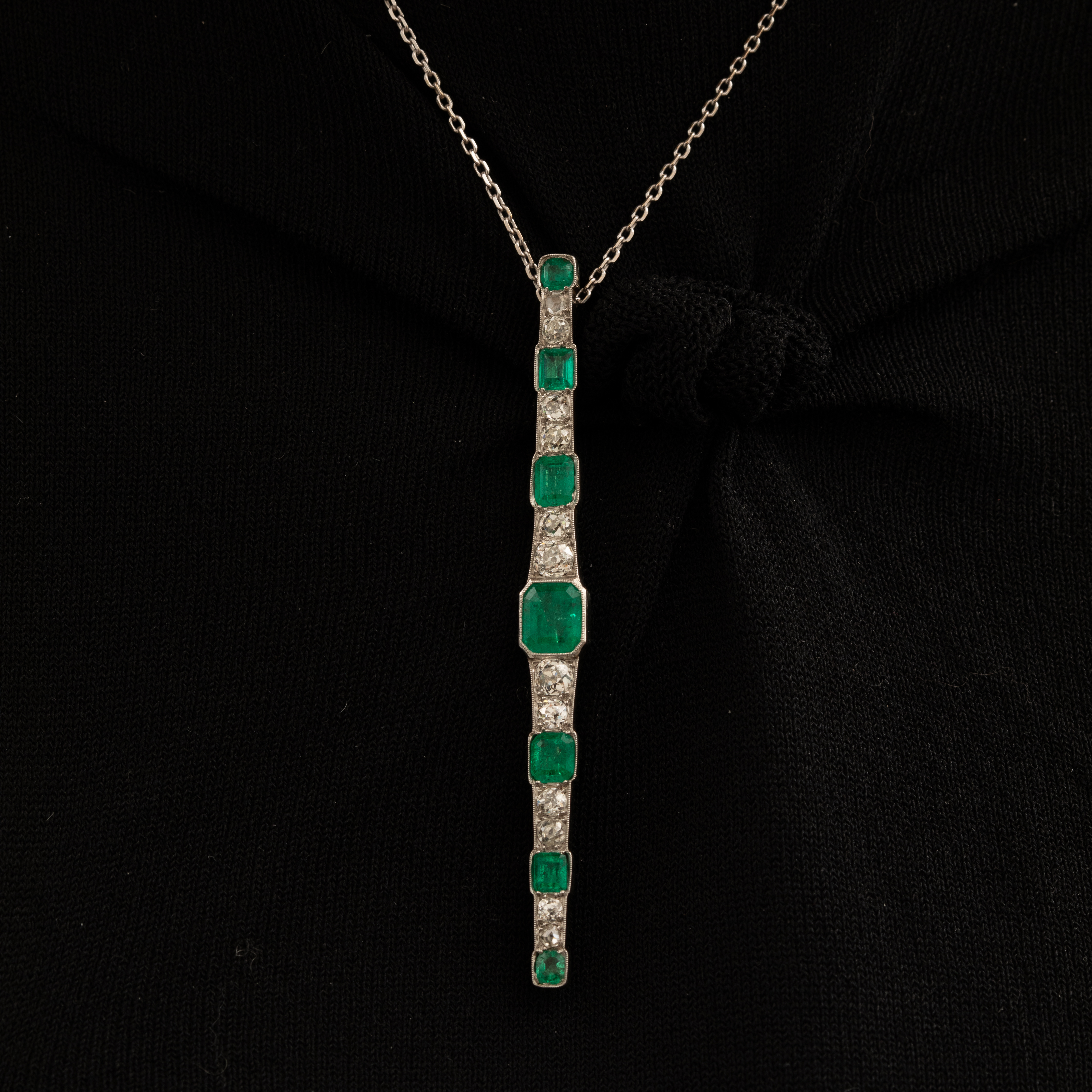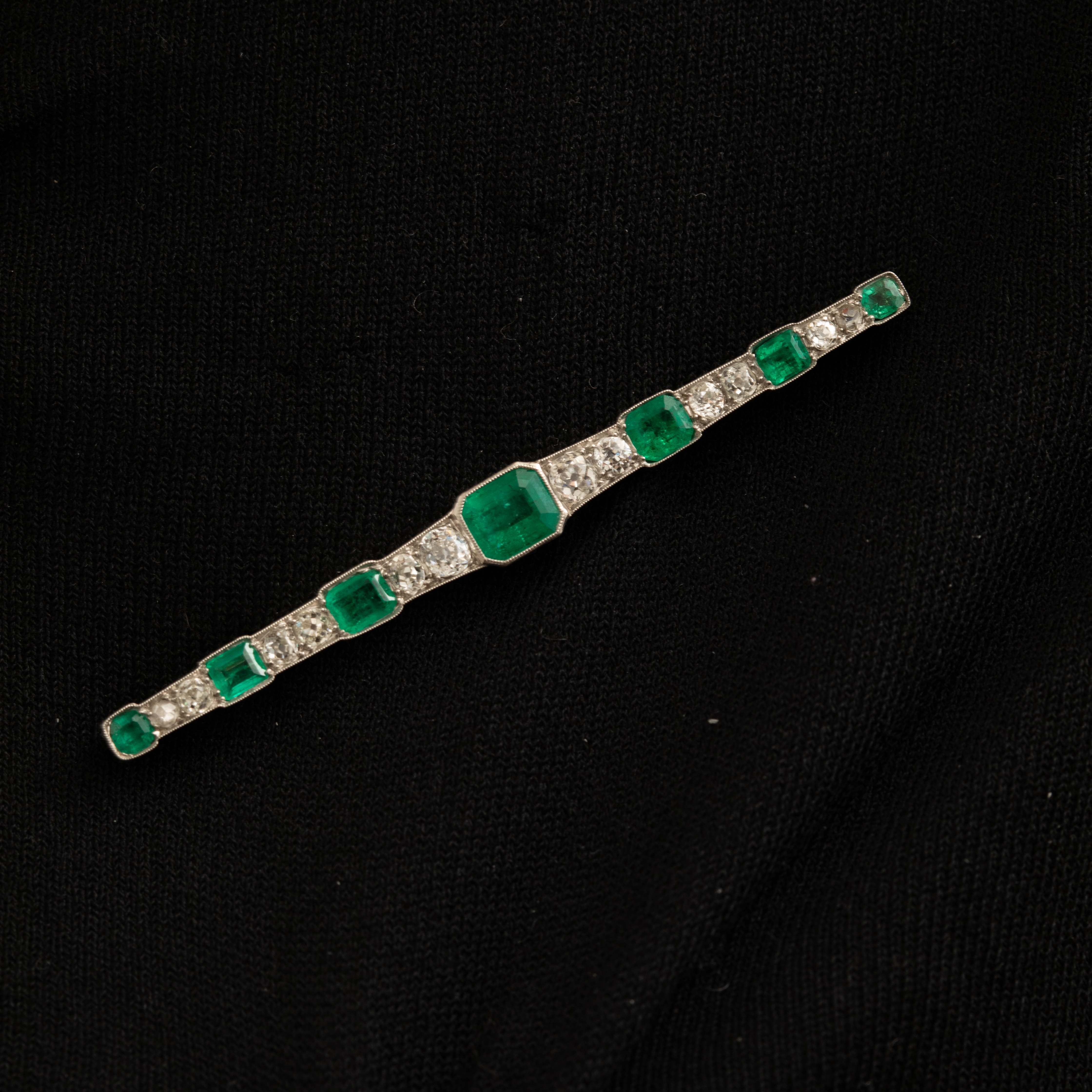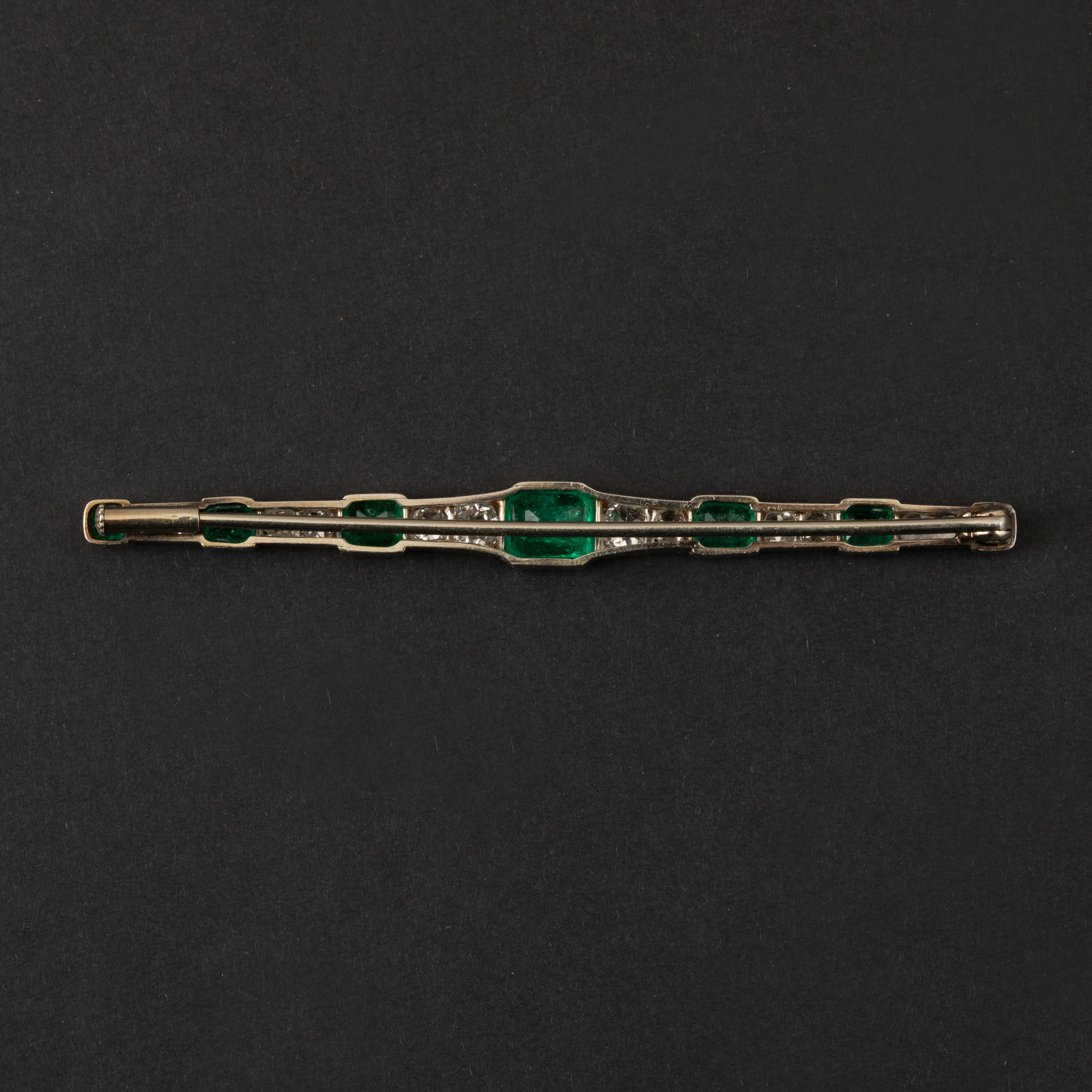 Barrette Art Deco Platine Emeraude Diamants 3900.0 EUR Barrette Art Deco en platine, émeraudes et diamants naturels   Plongez dans l'élégance intemporelle de l'Art Déco avec cette barrette broche exceptionnelle en platine.  Imaginez le vert profond et...