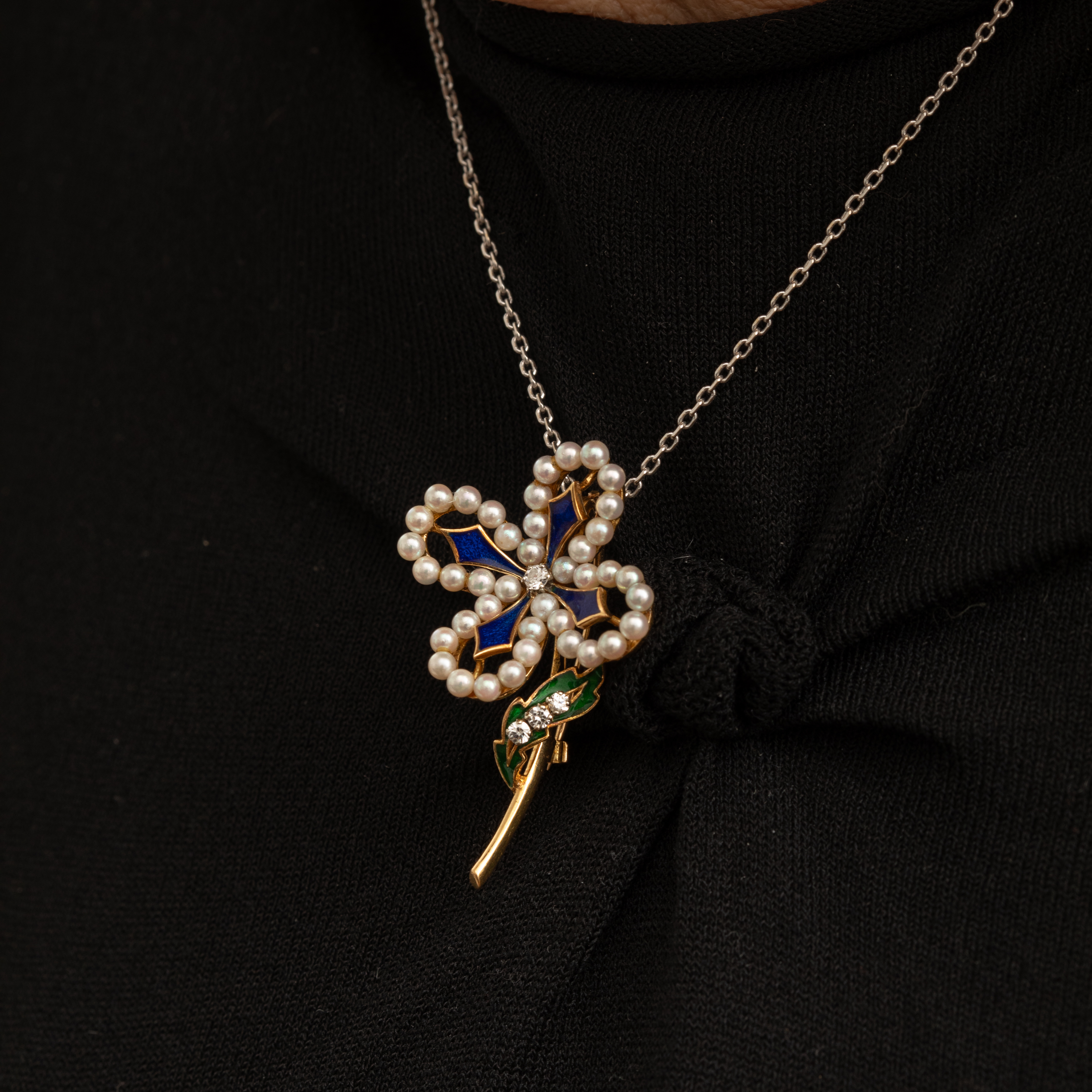 Broche trèfle à 4 feuilles en or 18k, perles Akoya et diamants – Élégance absolue Plongez dans la magie du porte-bonheur avec cette broche trèfle à 4 feuilles inspirée du style art déco. Imaginez...