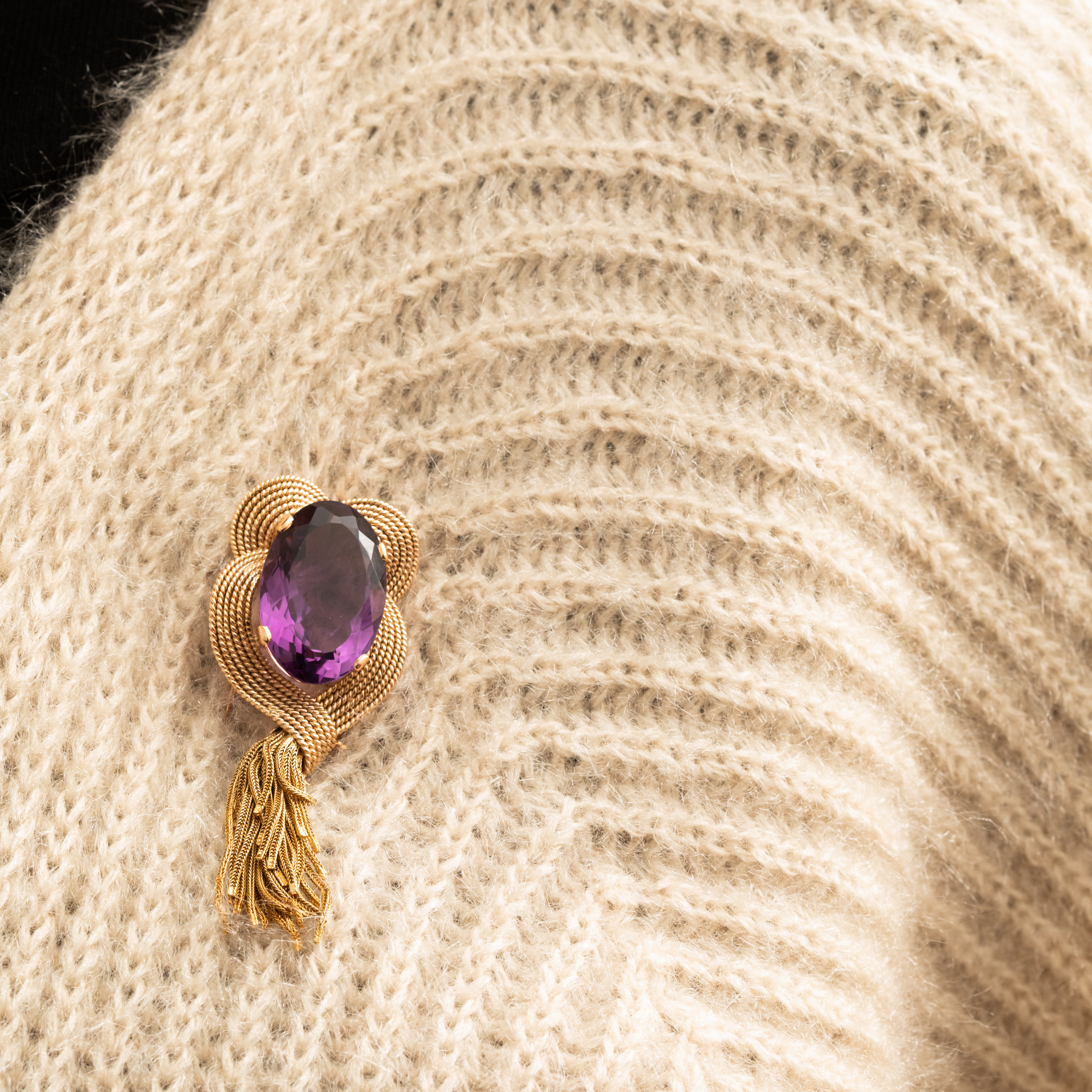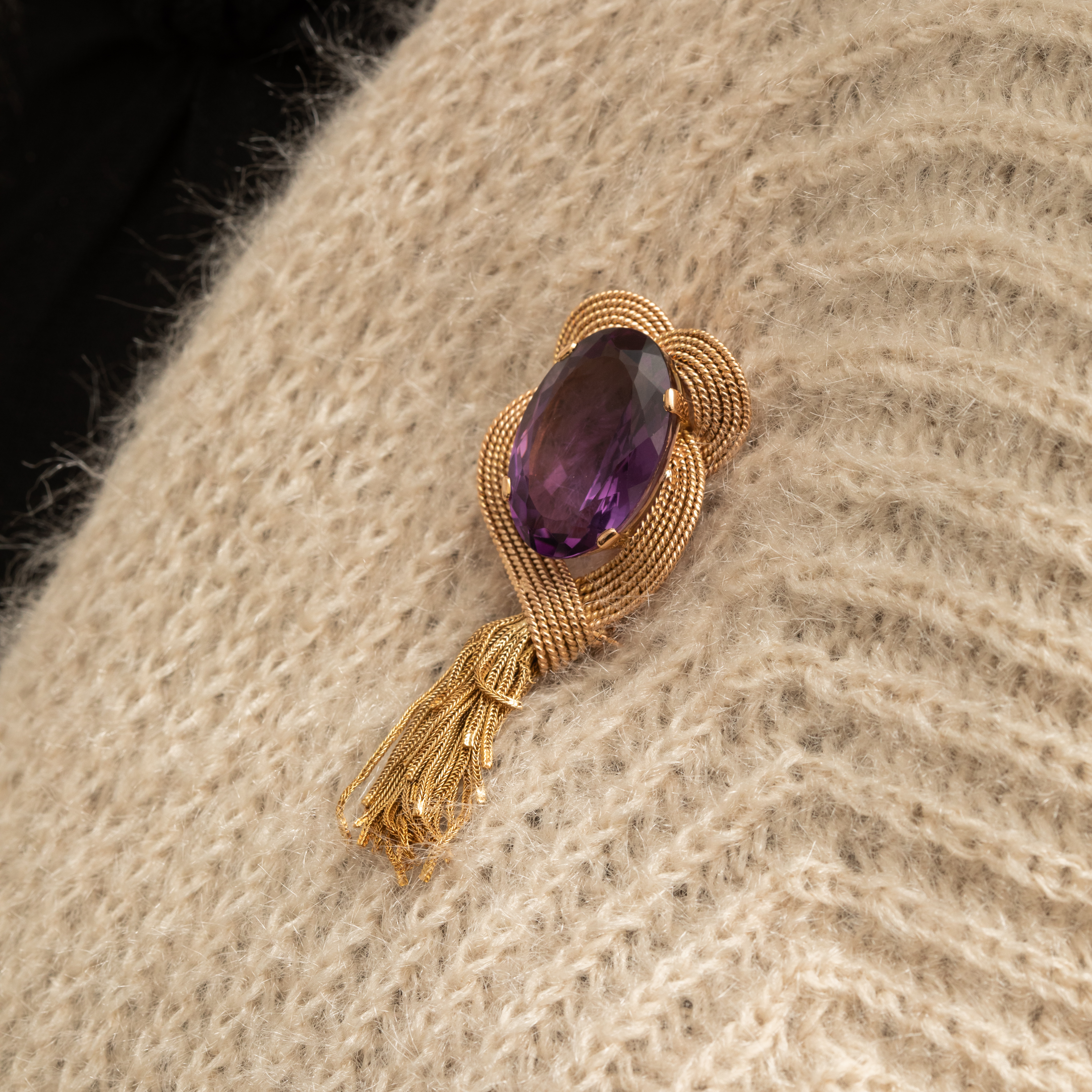 Broche vintage Améthyste et Fils d'Or 18k